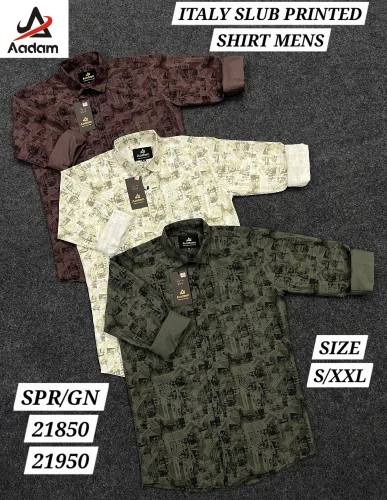 Upgrade your collection with our premium Italy Slub Printed Shirts for Men, designed for style, comfort, and durability. These shirts feature trendy printed patterns with a rich slub texture that gives a modern and fashionable look. Perfect for casual outings, parties, and everyday wear, these shirts are crafted with high-quality fabric to ensure a comfortable fit throughout the day. Available in multiple attractive colors and unique prints, these shirts are ideal for retailers, wholesalers, and garment resellers looking for stylish men’s fashion at competitive prices.