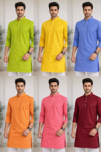 PARTY WEAR PLAIN COTTON LINEN KURTA PAJAMA FOR MENS