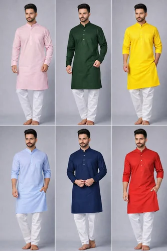 Men’s solid color kurta pajama designed for religious and festive occasions. Crafted from comfortable, breathable fabric, this kurta features a stylish mandarin collar, buttoned placket, and a straight fit that offers both elegance and ease of movement. Paired with a classic white pajama, it creates a timeless ethnic look suitable for puja, festivals, temple visits, family functions, and traditional celebrations. Available in multiple vibrant colors to suit every festive mood.